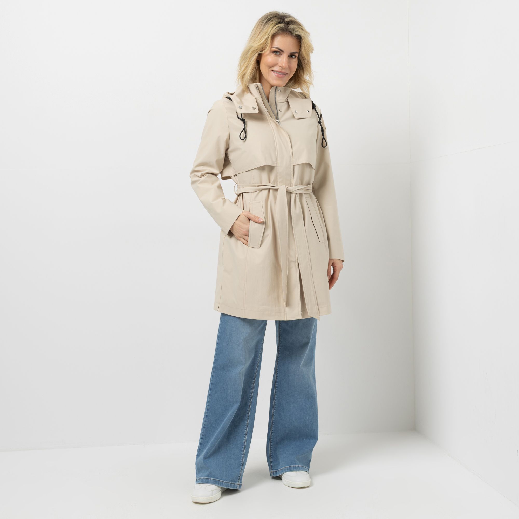 STRANDFEIN Trenchcoat mit Kapuze 2-Wege-Reißverschluss figurumspielend