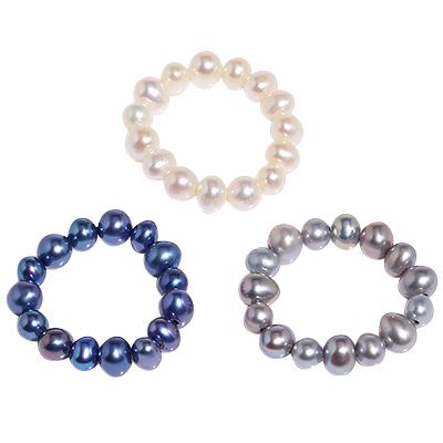 Dieses 3-teilige Ring-Set präsentiert sich im reizvollen Farbmix. Die Ringe sind jeweils mit Süßwasserzuchtperlen besetzt, die in 3 verschiedenen, harmonisch aufeinander abgestimmten Farben kommen und auf flexibles Nylonband aufgezogen sind.