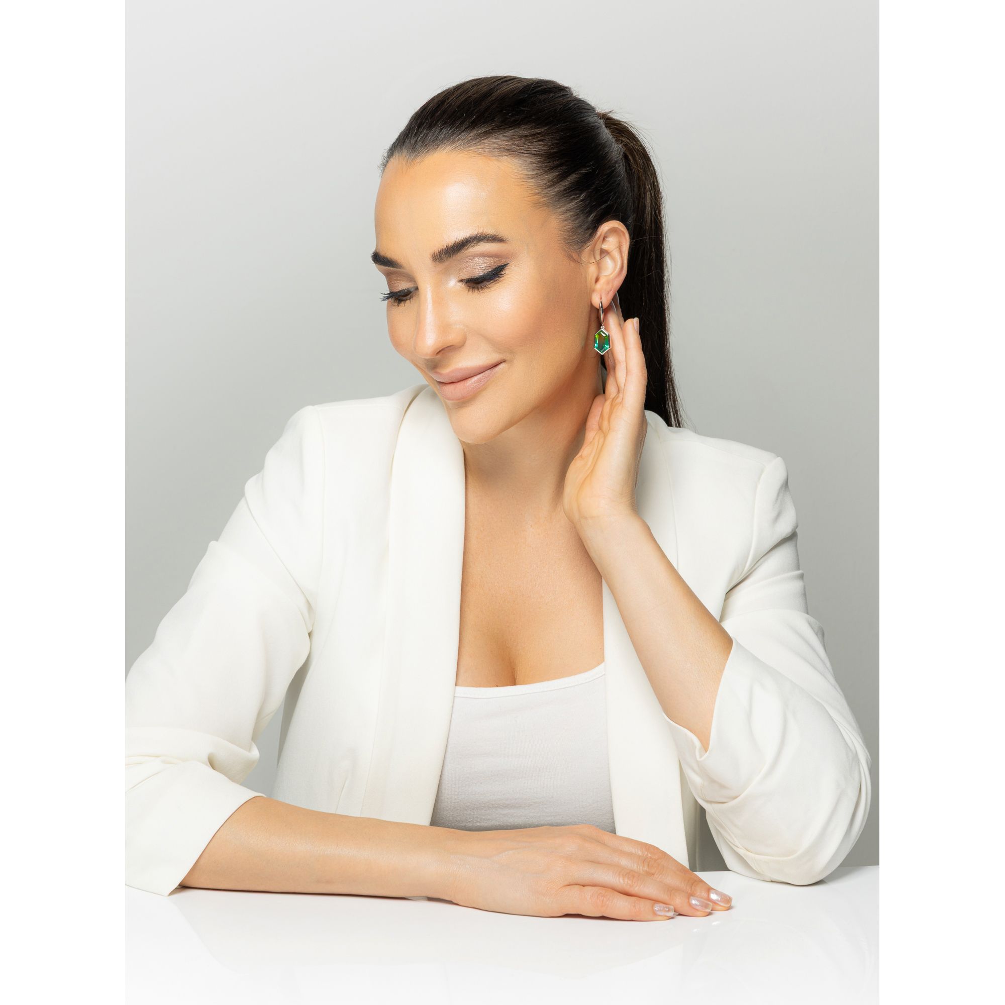 Die Ohrhänger von THOMAS & SOHN aus Silber präsentieren leuchtende Quarz-Doubletten im raffinierten Hexagonschliff