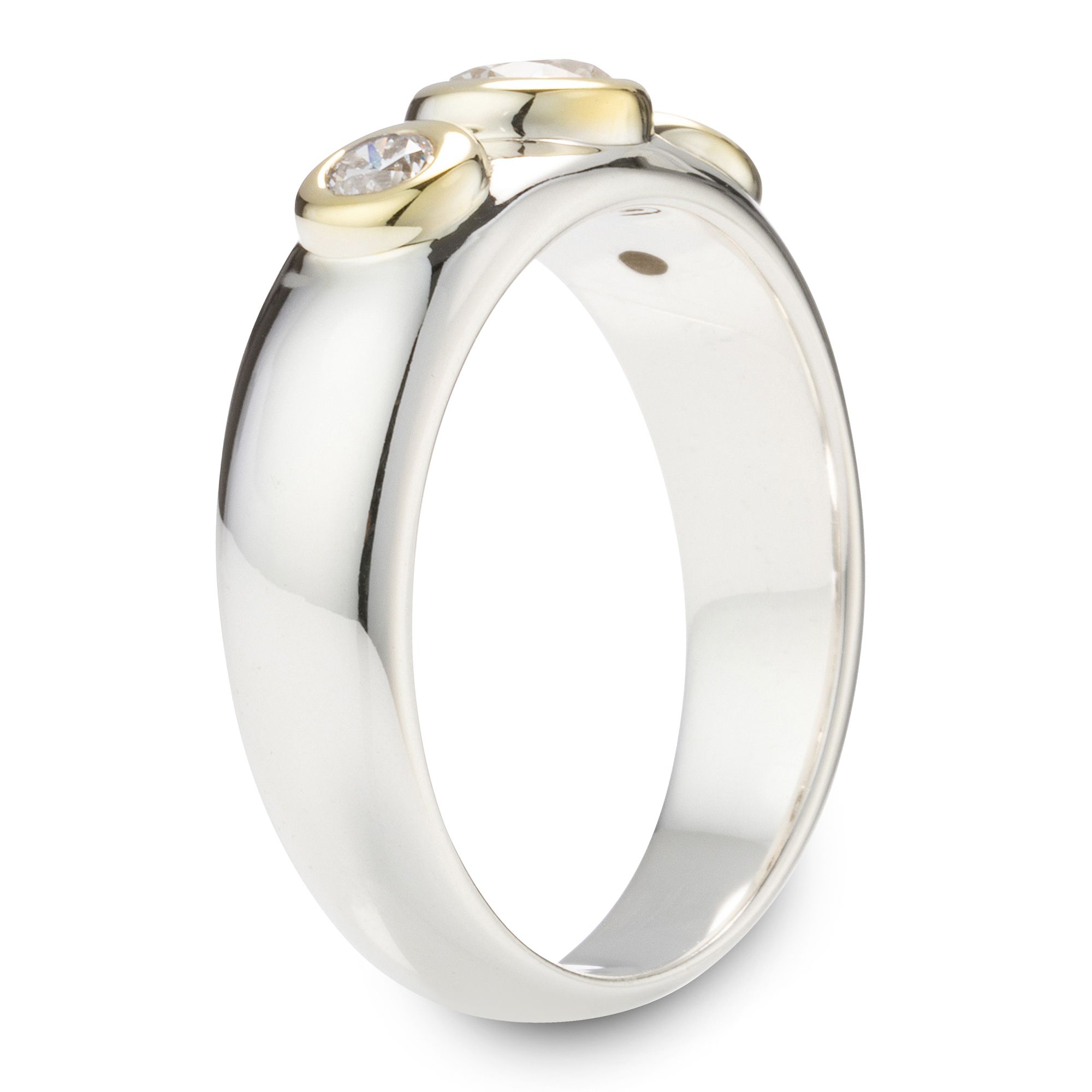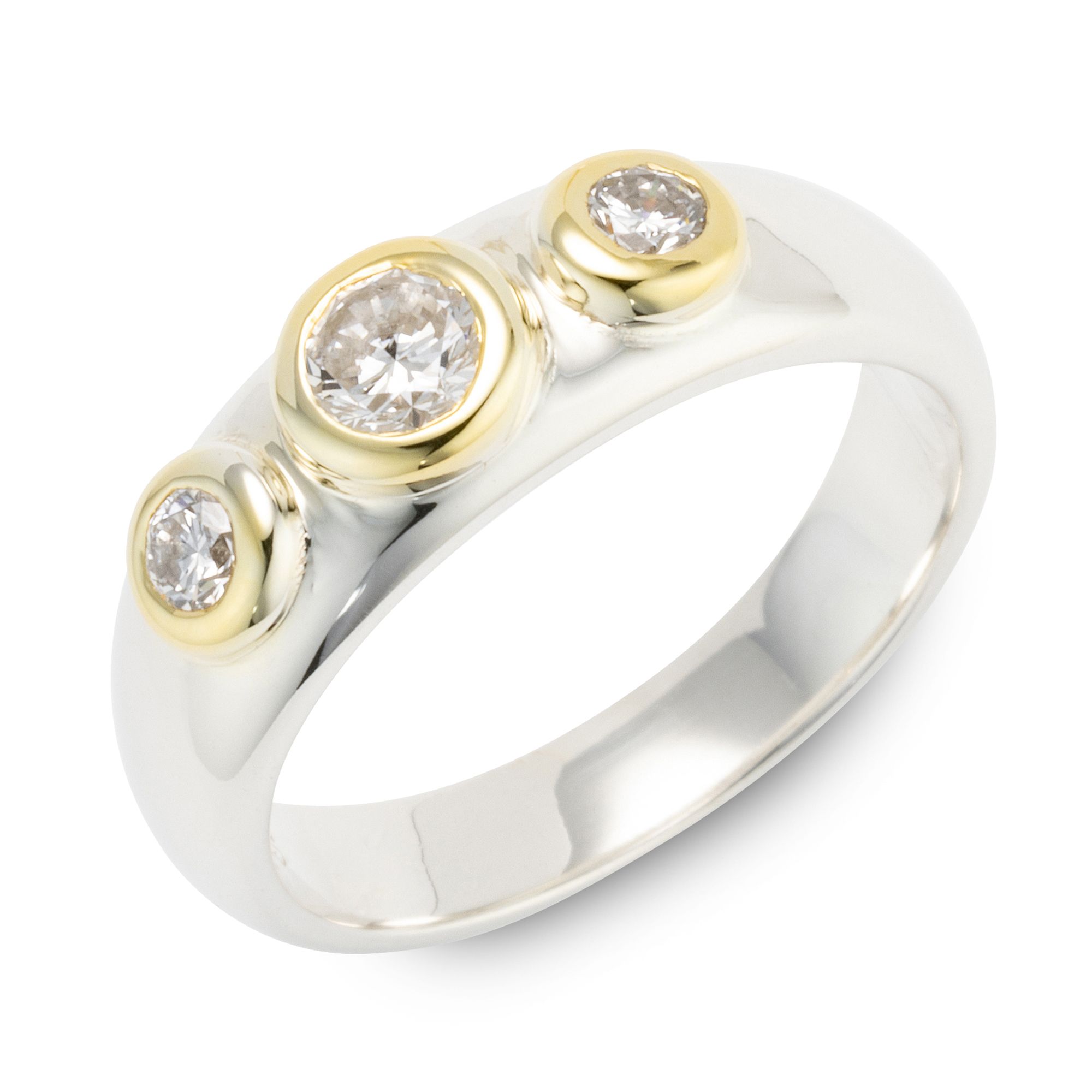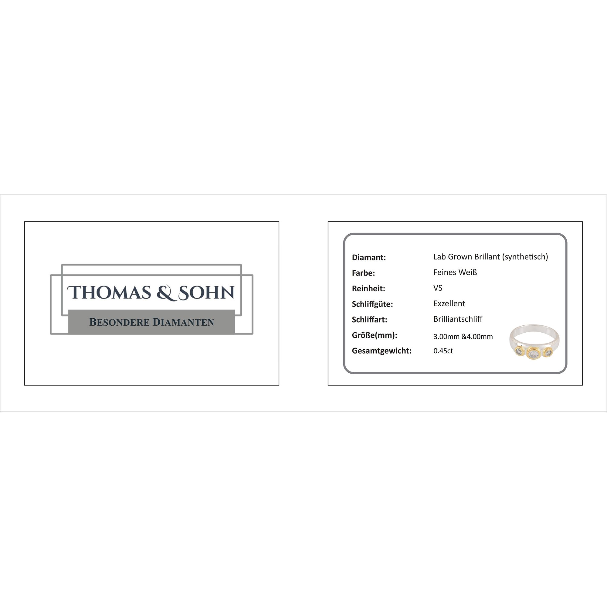 - 3 Lab Grown Diamanten (synthetisch), Brillantschliff, feines Weiß/VS, zusammen ca. 0,45 Karat, Zargenfassungen