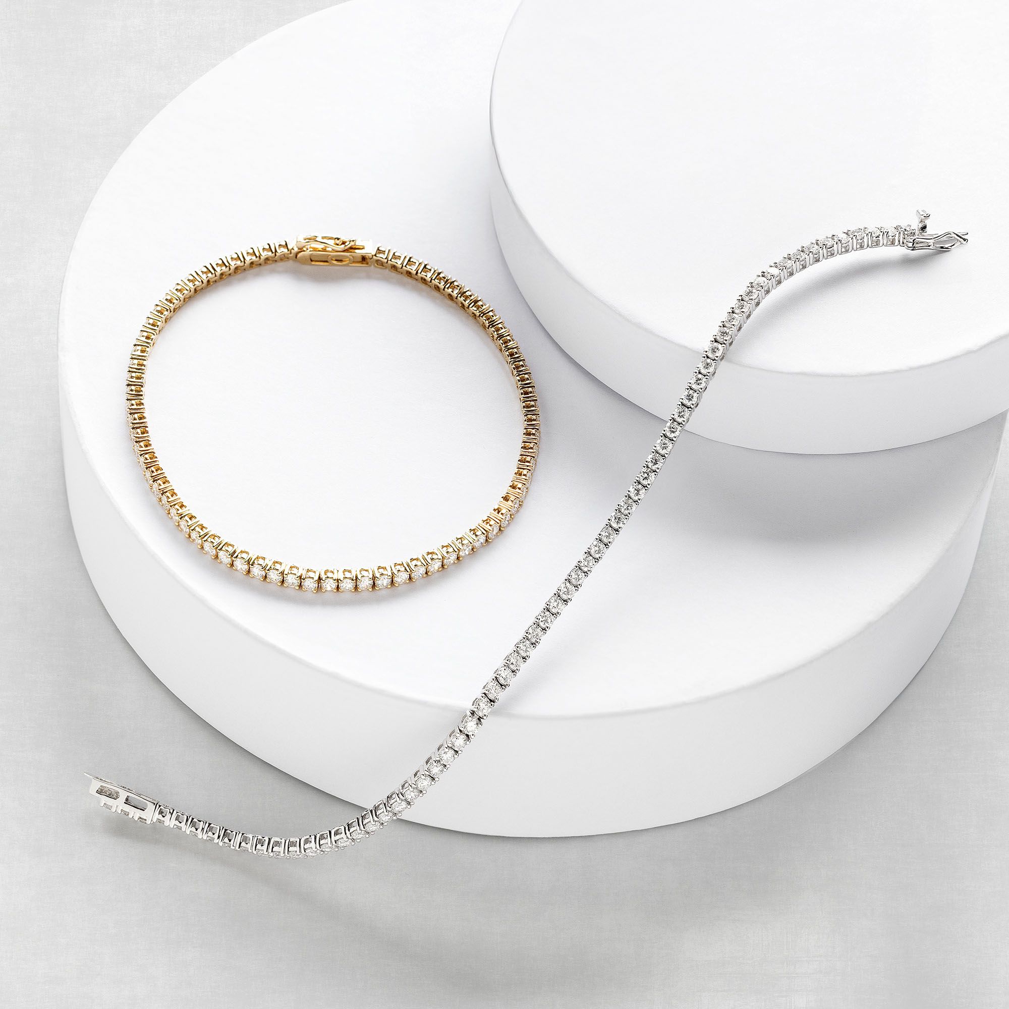 - Länge: ca. 19 cm, 73 Lab Grown Diamanten (synthetisch), Brillantschliff, feines Weiß/VS, zusammen ca. 3,43 Karat, Krappenfassungen