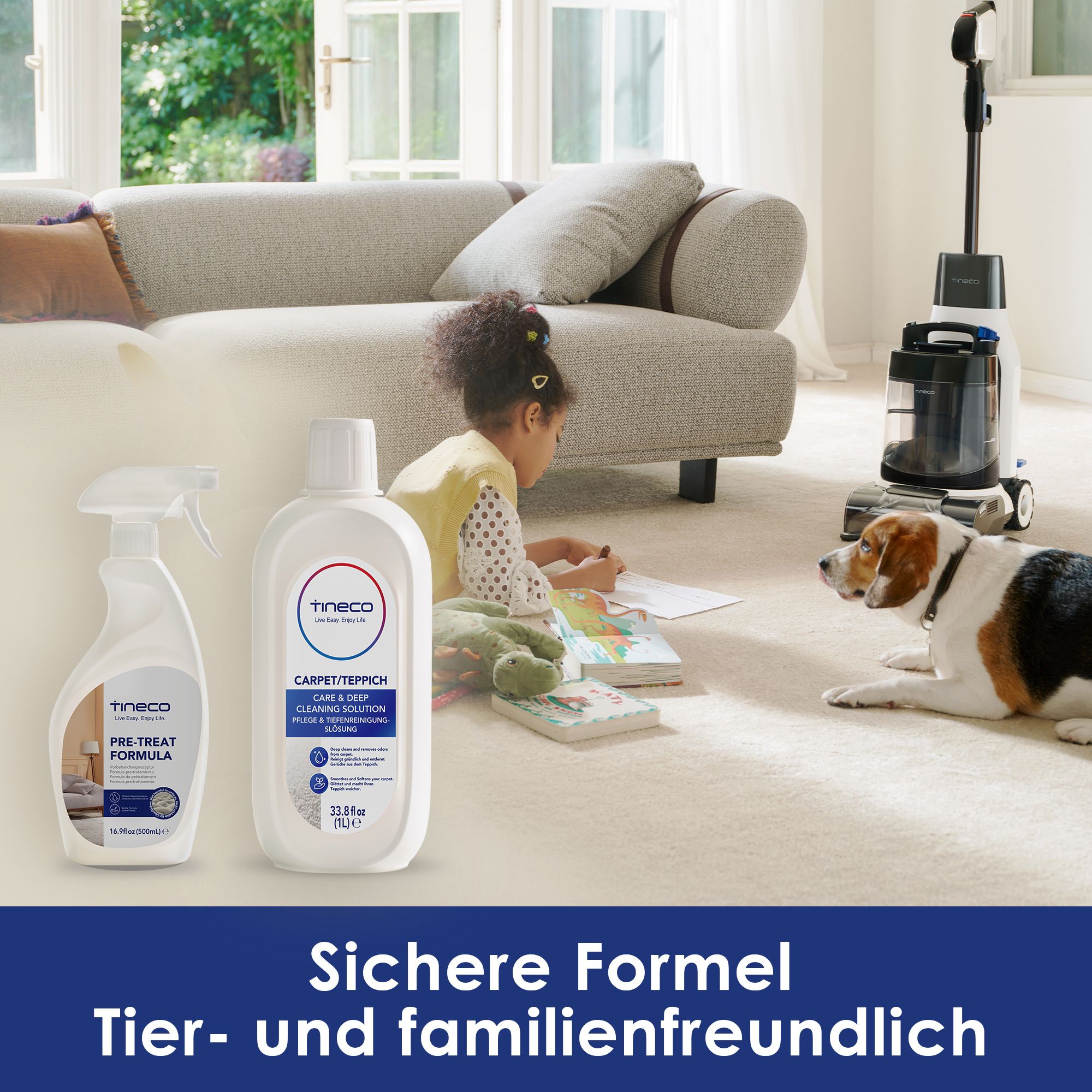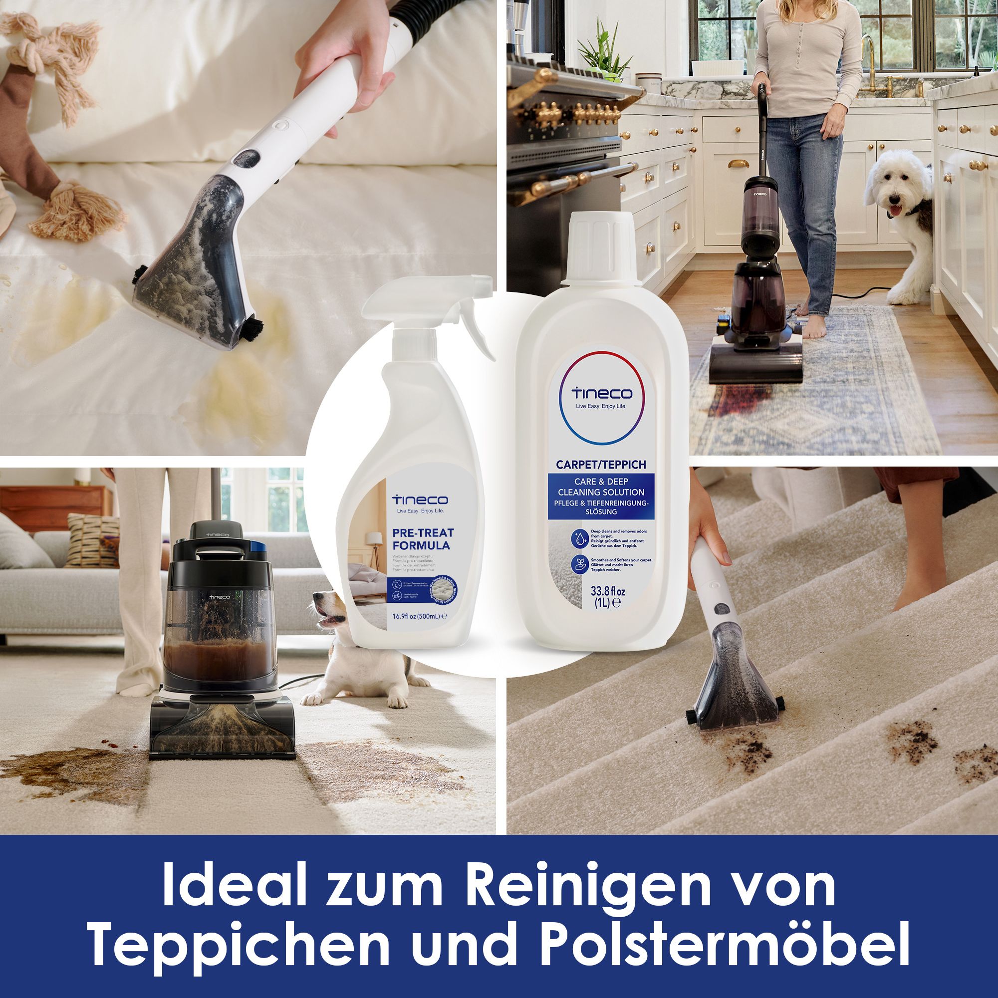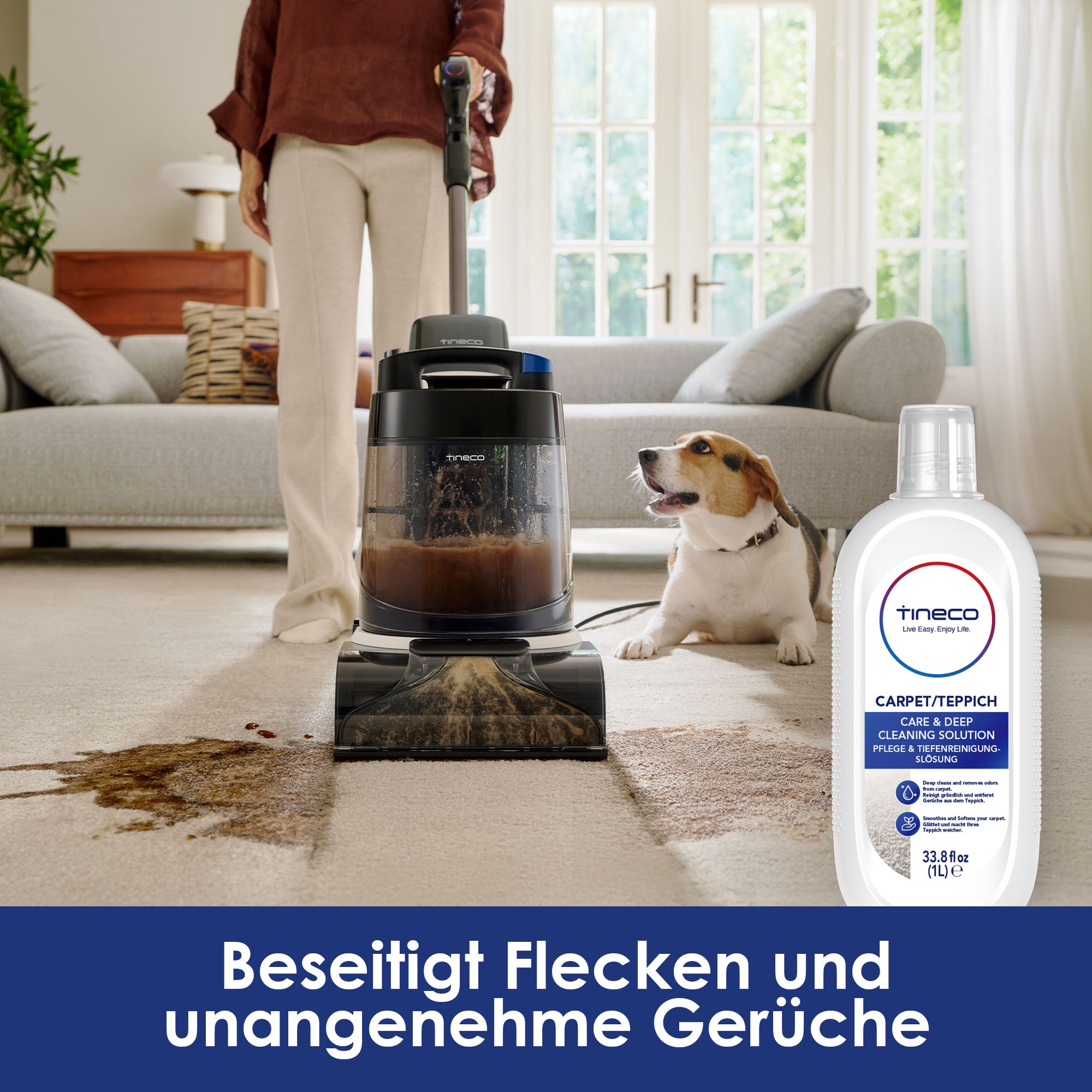Mit TINECO bringst du deine Teppiche, Vorleger und Polstermöbel wieder zum Strahlen. Die spezielle Kombination aus Teppichreiniger und Vorbehandlungslösung unterstützt dich zuverlässig beim Entfernen von Flecken und Gerüchen – für ein rundum sauberes Zuhause, das sich auch für Familien mit Haustieren eignet.