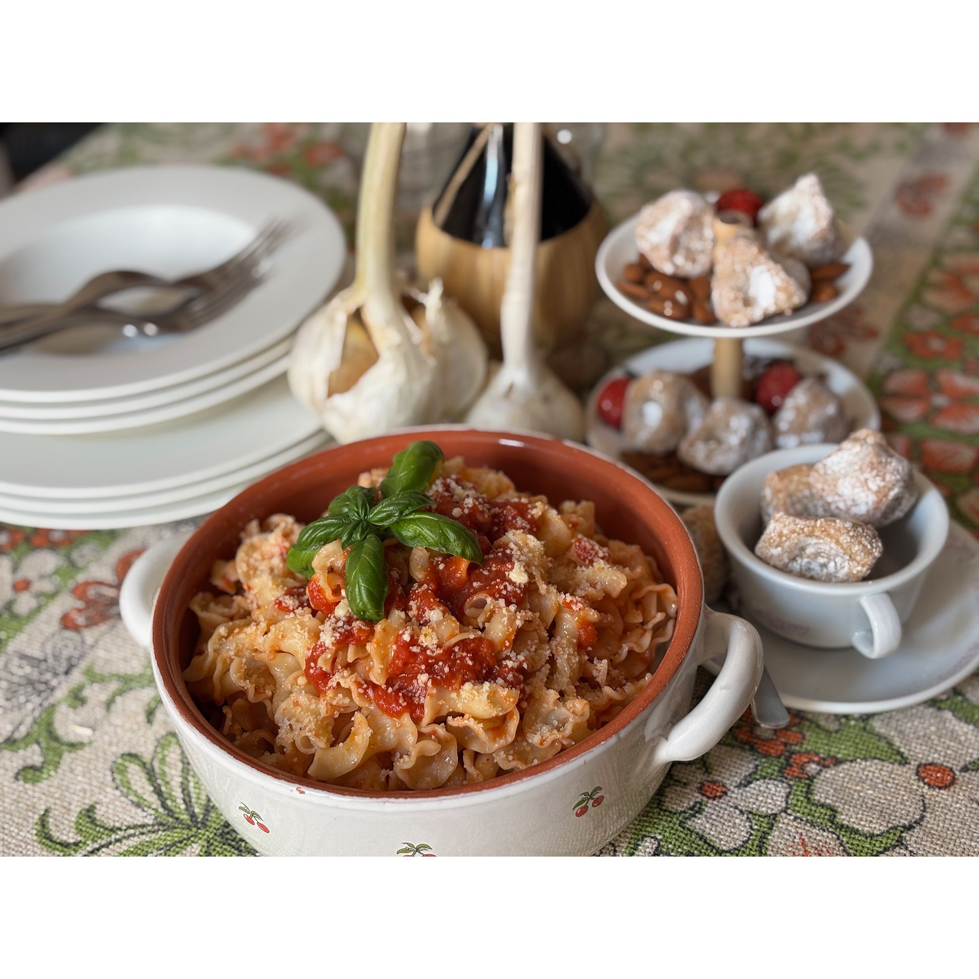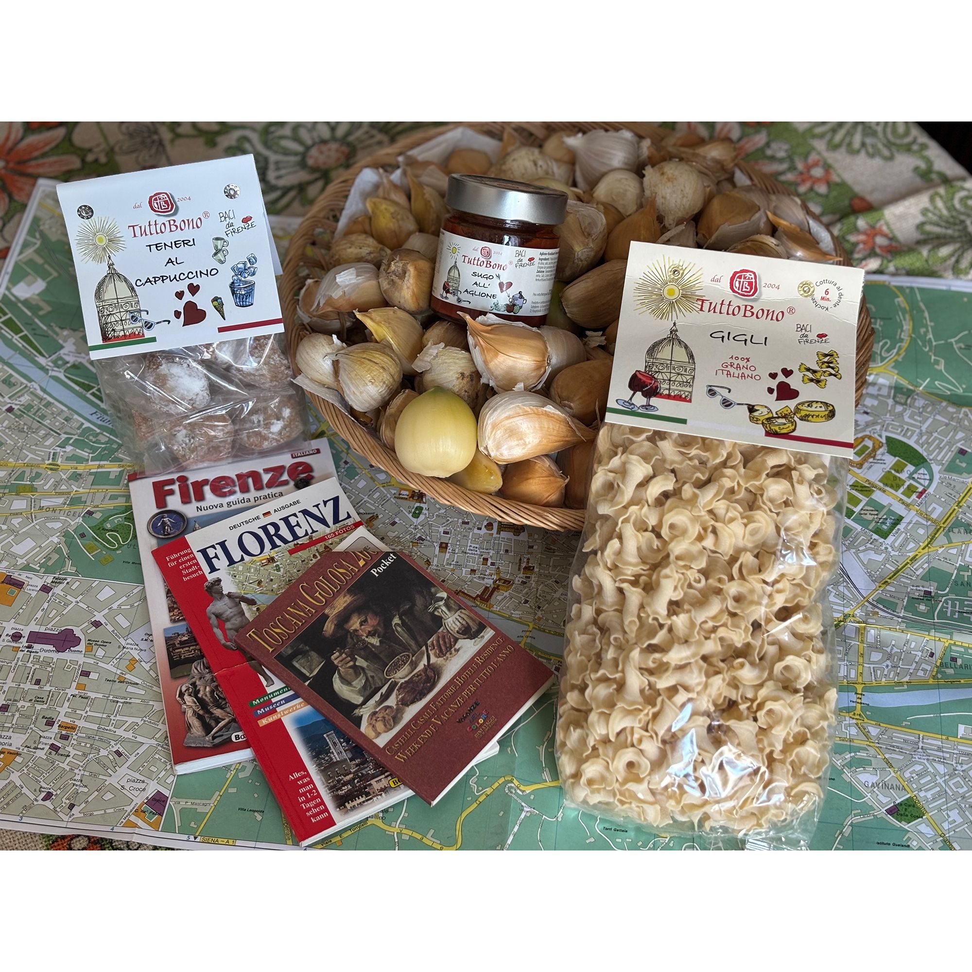 Die Vielfalt der toskanischen Küche in einem Menü! Genieße mit Gigli-Nudeln (auch florentiner Lilien genannt), einer aromatischen Tomatensoße und weichem Cappuccino-Gebäck einen kulinarischen Ausflug zu einem sonnigen Nachmittag in Florenz.