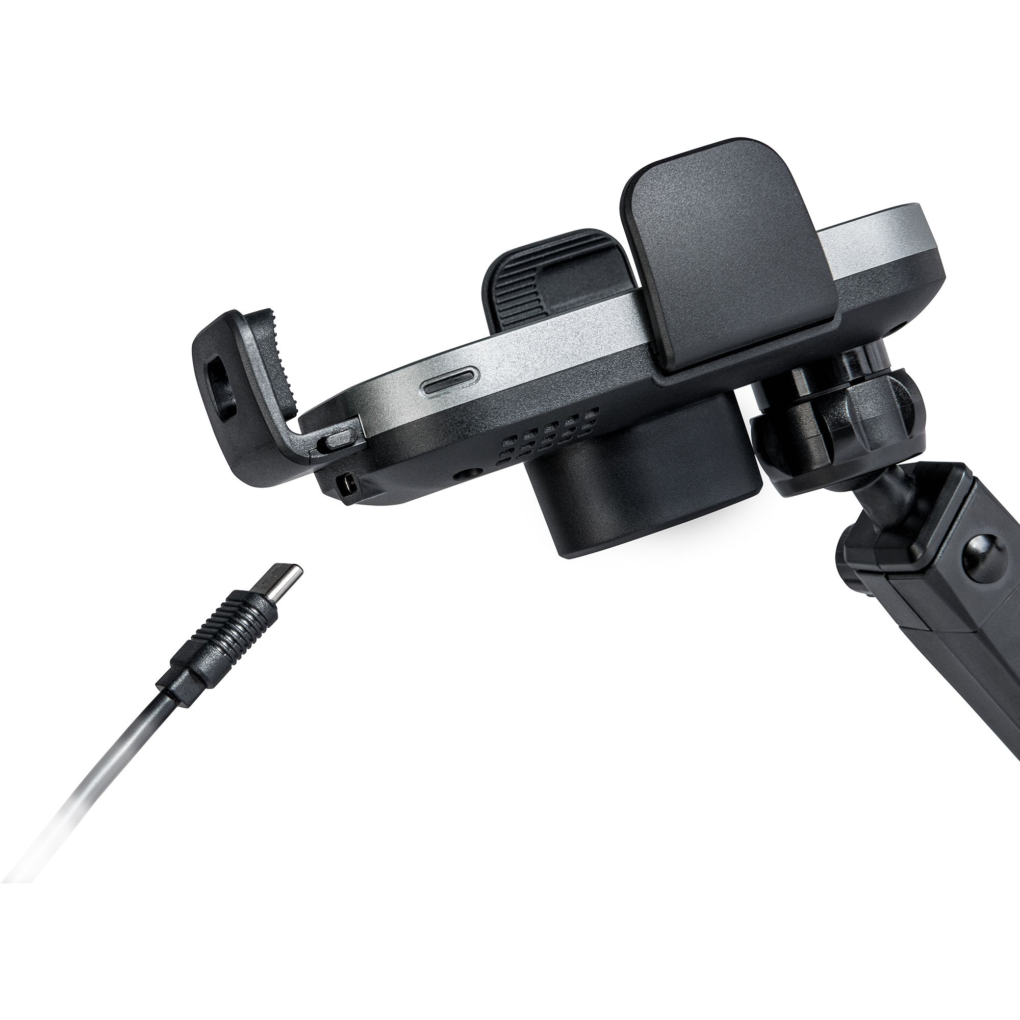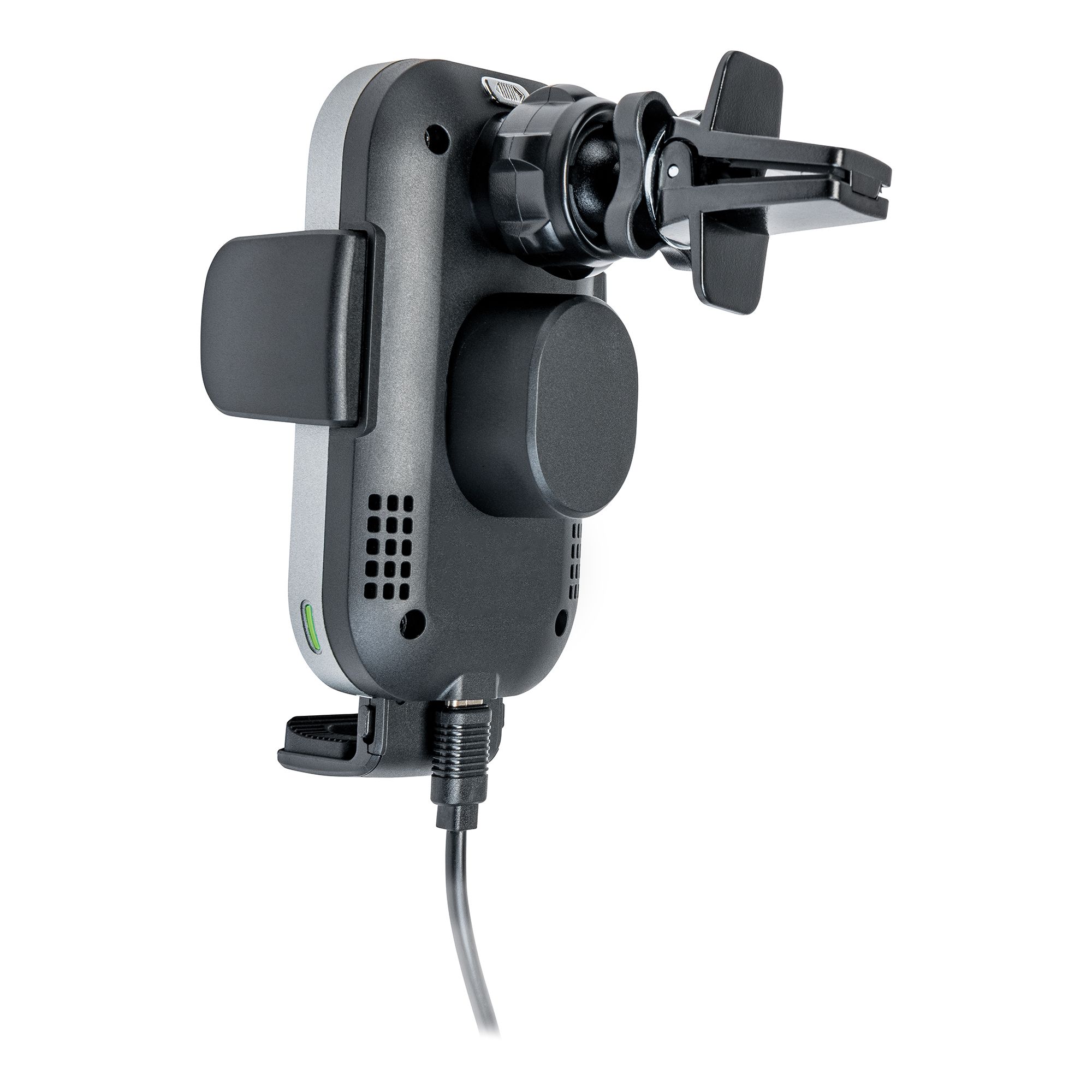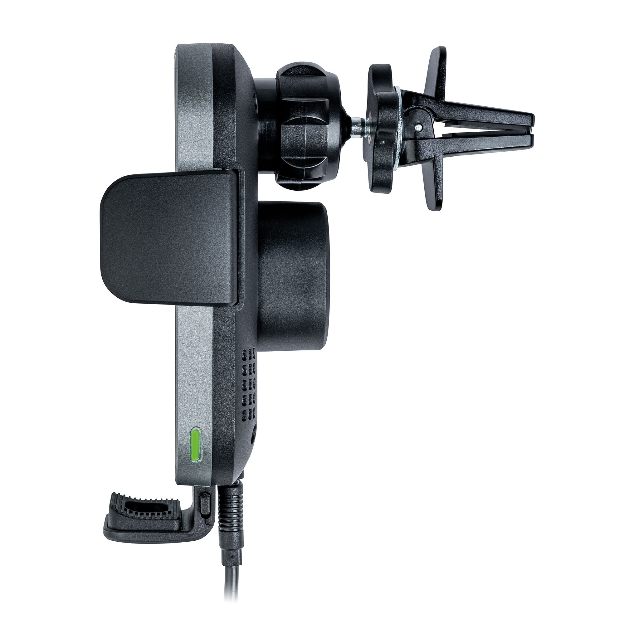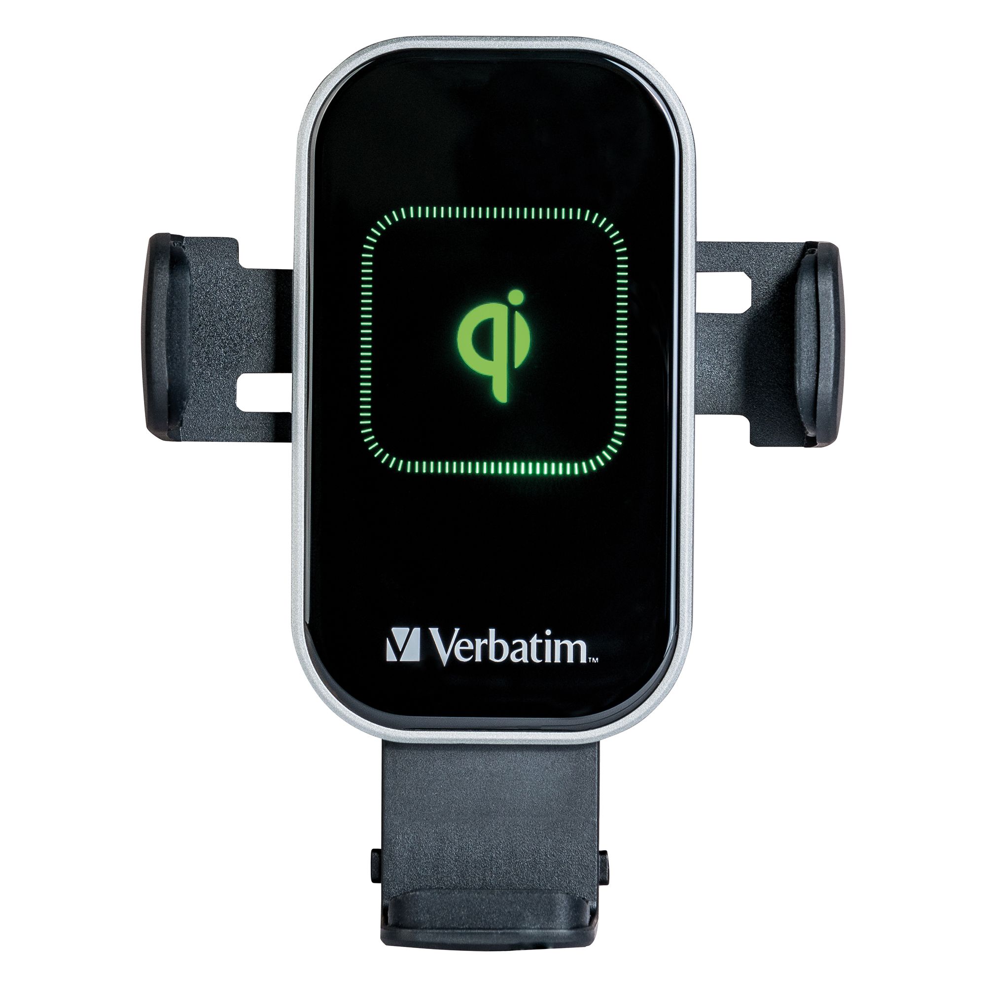 Der schnellladender Handyhalter von VERBATIM verwendet Hochgeschwindigkeits-Qi-Funkladetechnologie, um sicheres und schnelles Laden für Android oder iPhone zu bieten. Die hochwertige Halterung mit ihrer gehärteten Glasoberfläche ermöglicht freihändige Telefonate und eine einfache Ansicht von GPS-Karten, während das Qi-fähiges Smartphone schnell geladen wird. Wenn das Telefon in die Halterung eingesetzt wird, schließen die seitlichen Klemmarme und die Fußstütze automatisch und halten das Telefon an Ort und Stelle. Die Arme und die Fußstütze öffnen sich per Knopfdruck oben am Ladegerät.