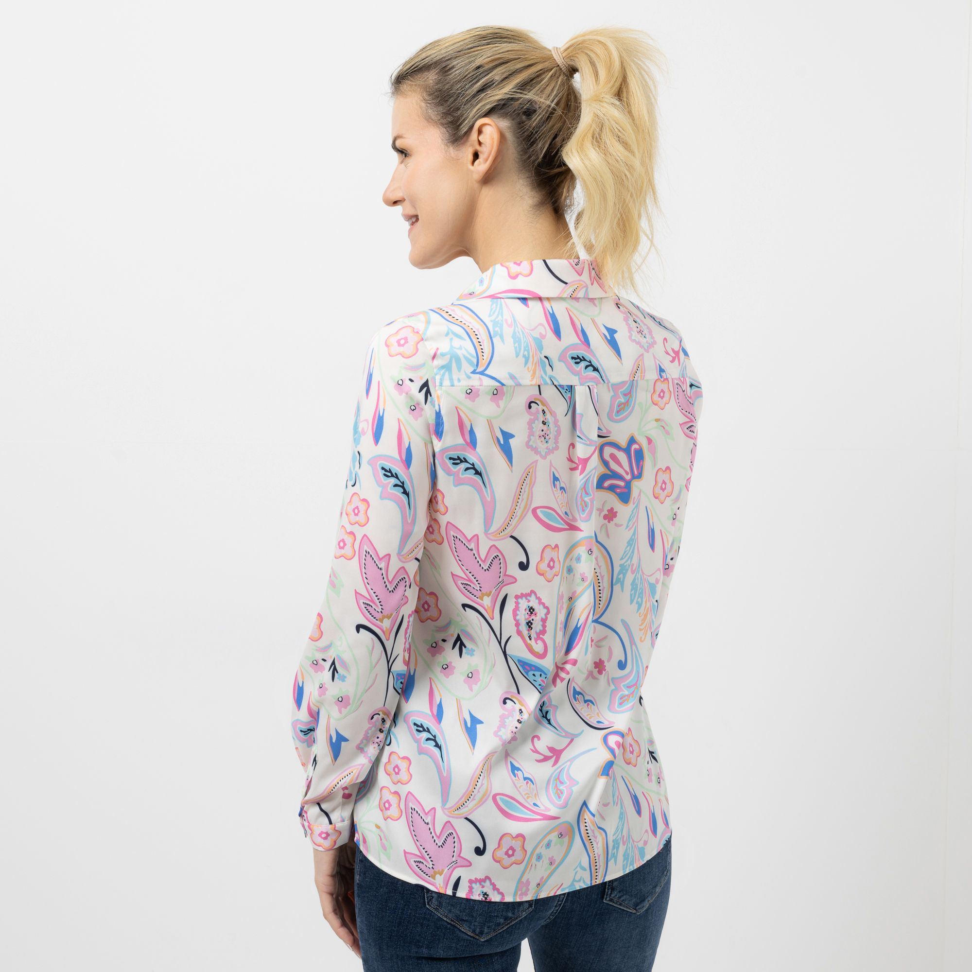 VIA MILANO Bluse, 1/1-Arm Blusenkragen Allover Druck figurumspielend