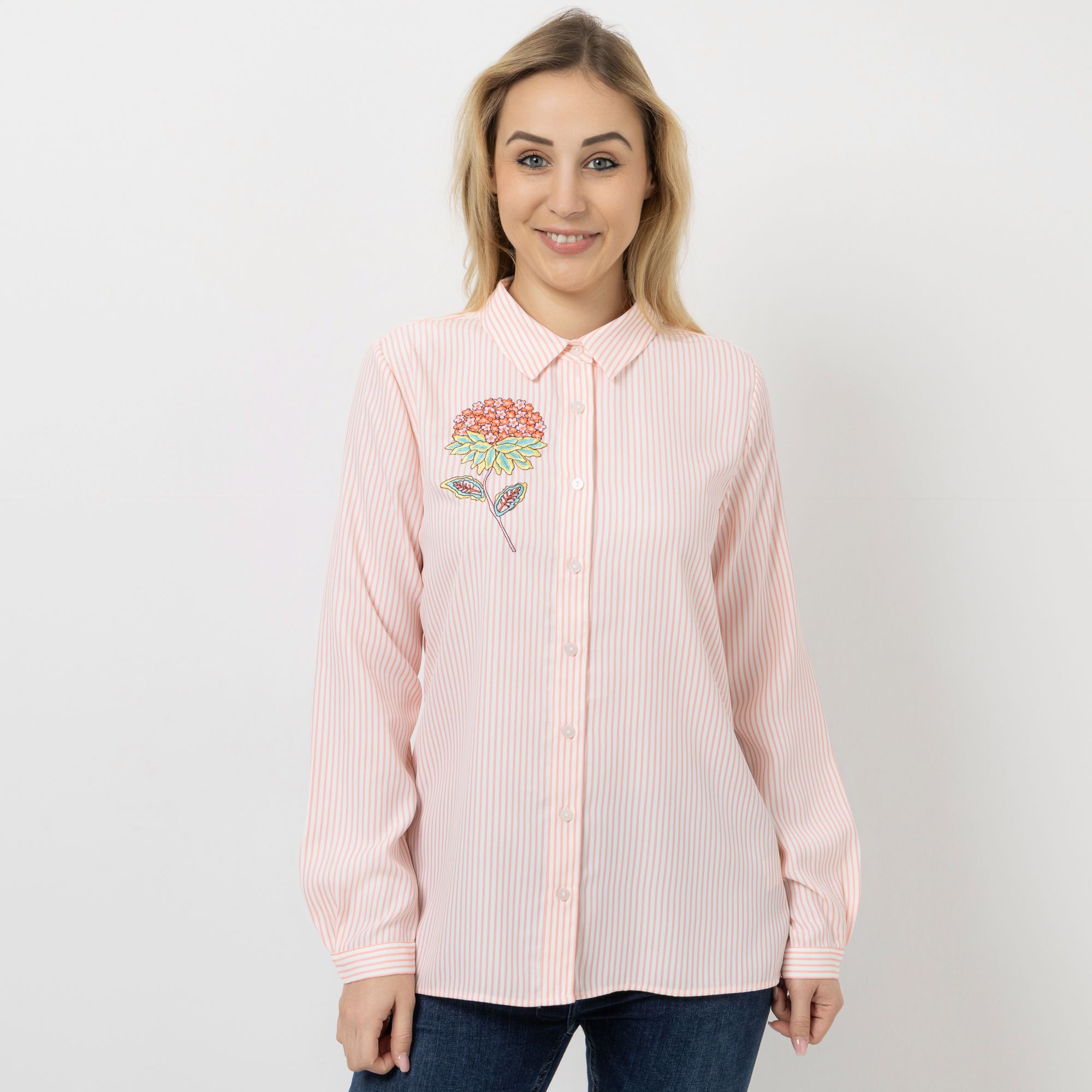 VIA MILANO Bluse, 1/1-Arm Blusenkragen Stickerei figurumspielend