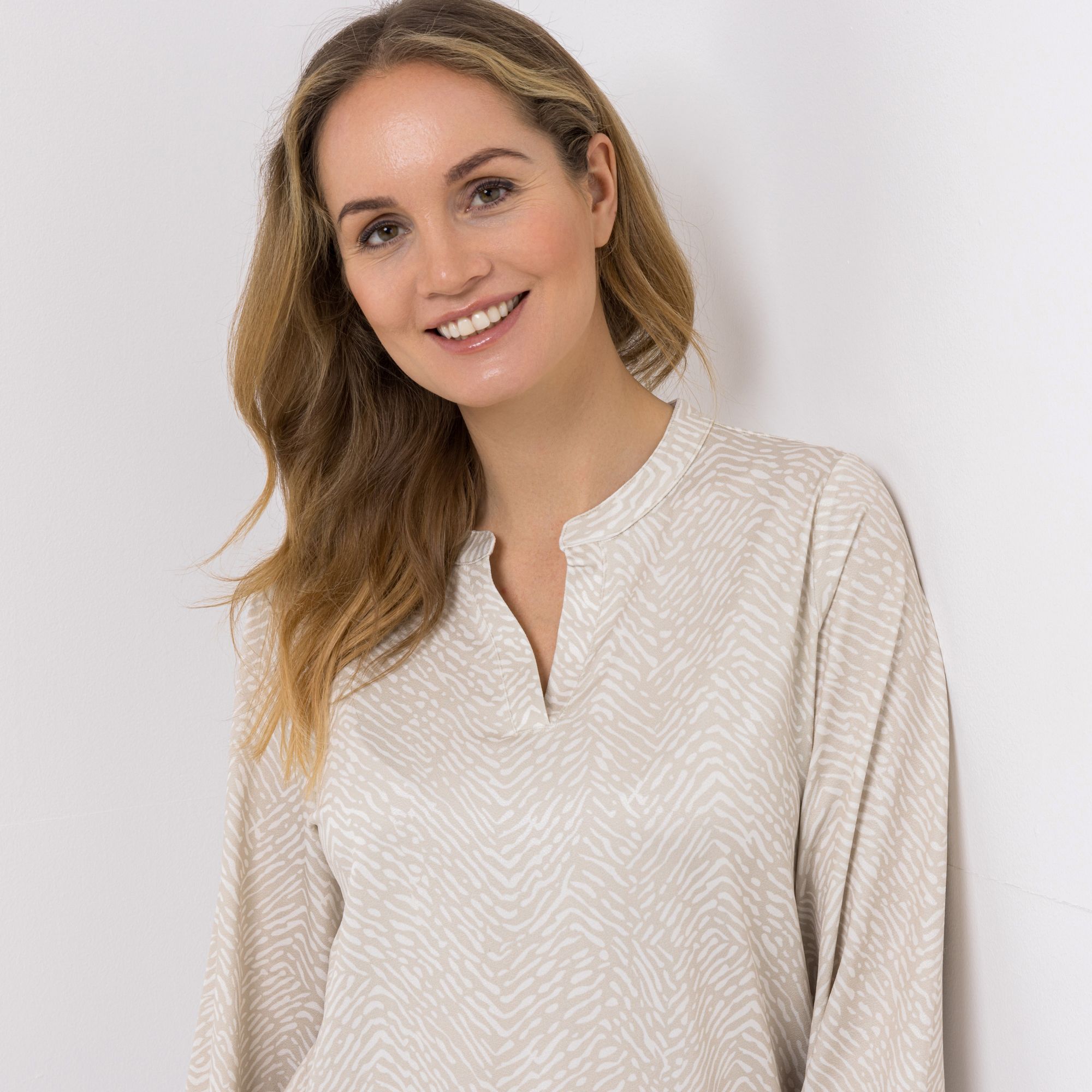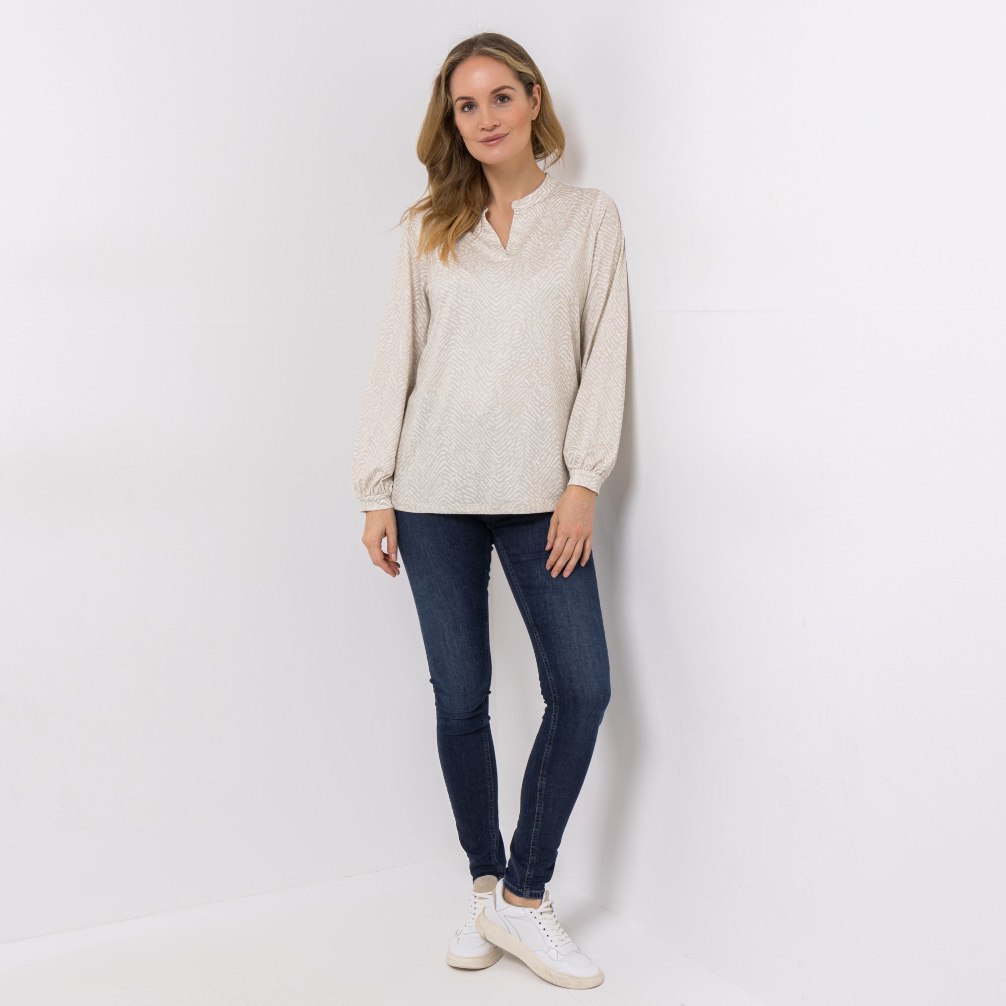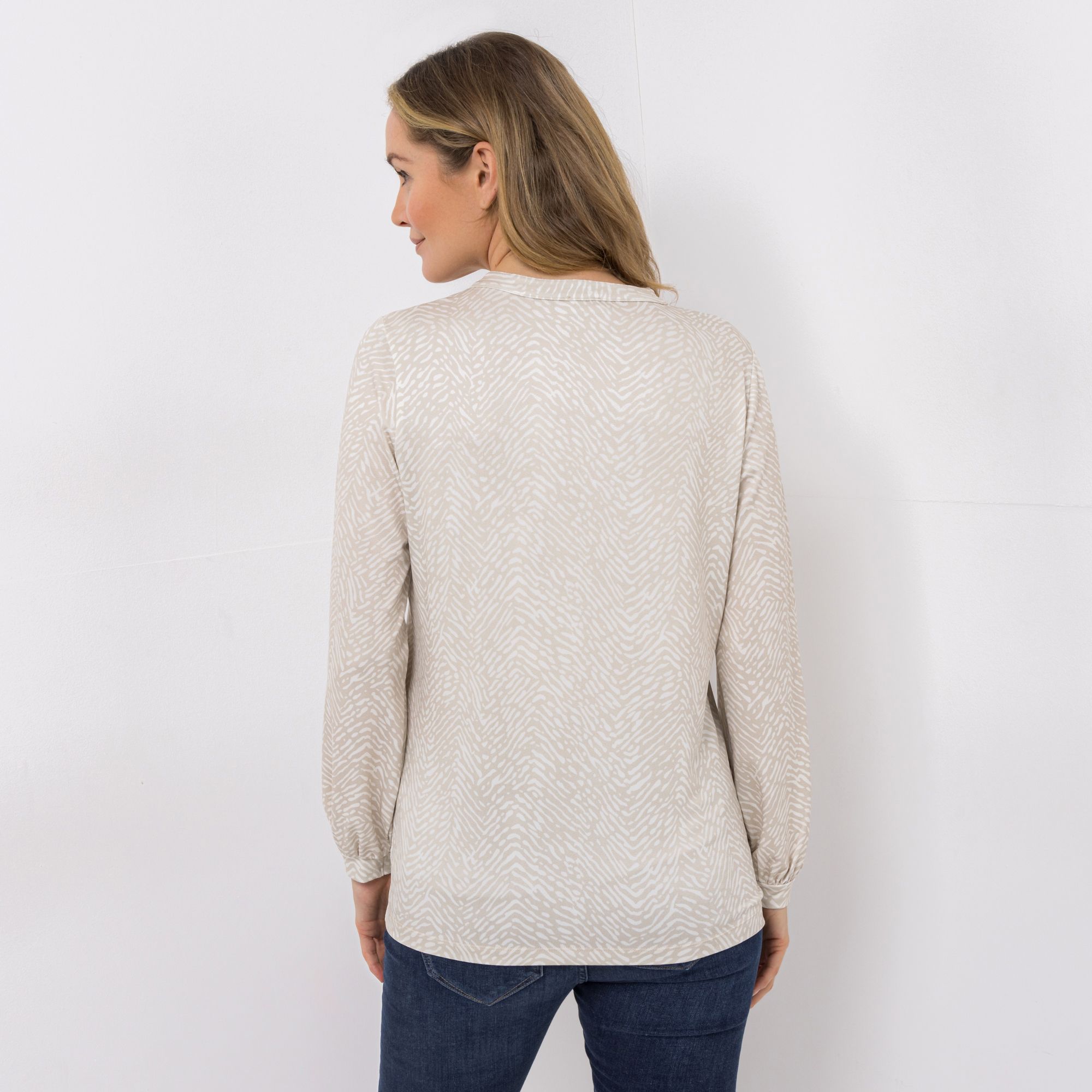 VIA MILANO Bluse, 1/1-Arm Serafino-Ausschnitt Allover-Print figurumspielend