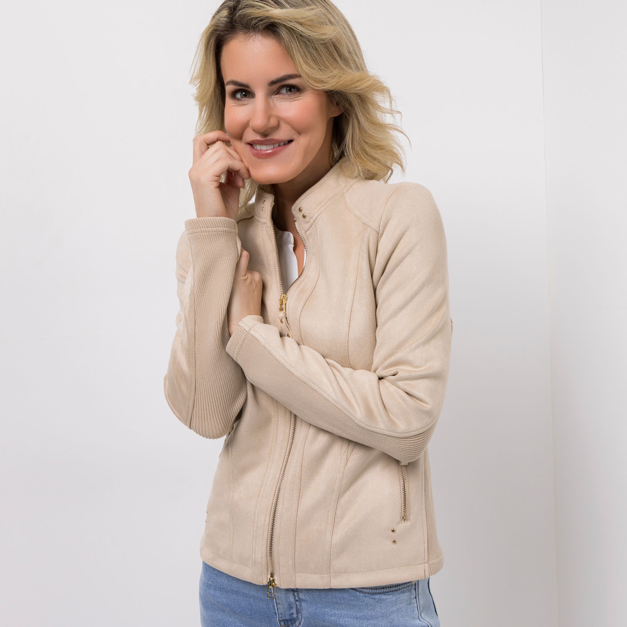 VIA MILANO Jacke Veloursleder-Optik Stretch-Einsatz figurbetont