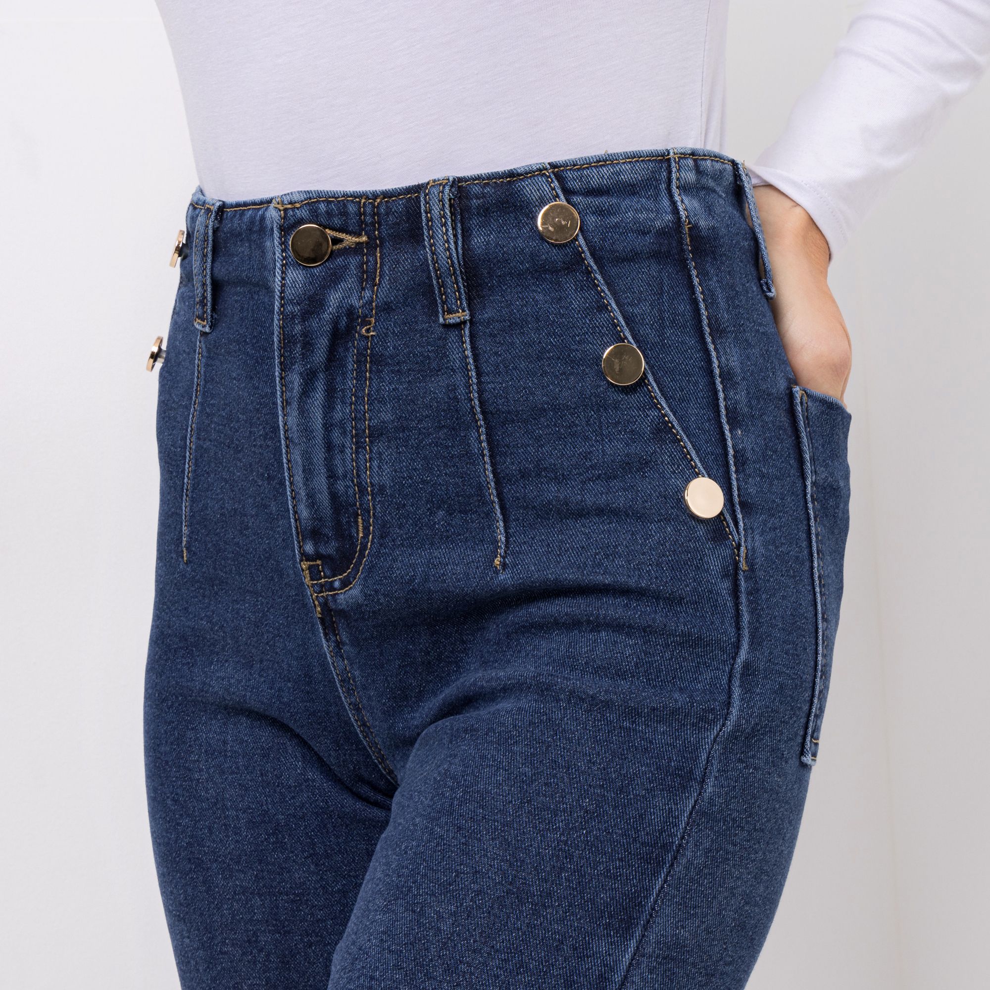 VIA MILANO Jeans, 1/1-Länge Taschen-Optik mit Knopf-Details gerades Bein