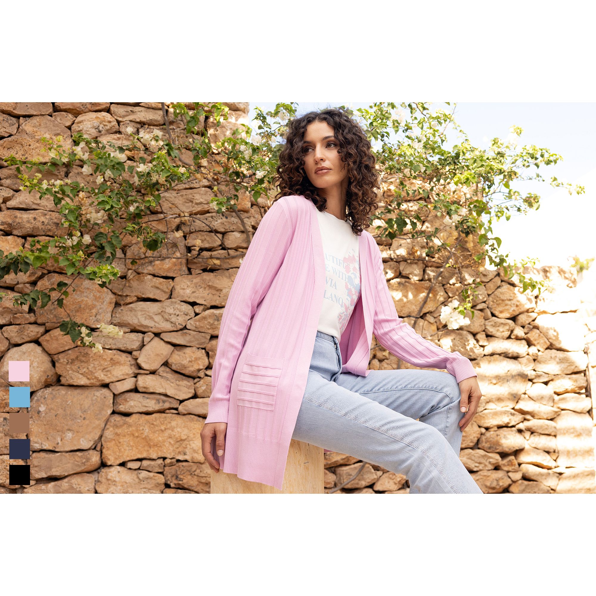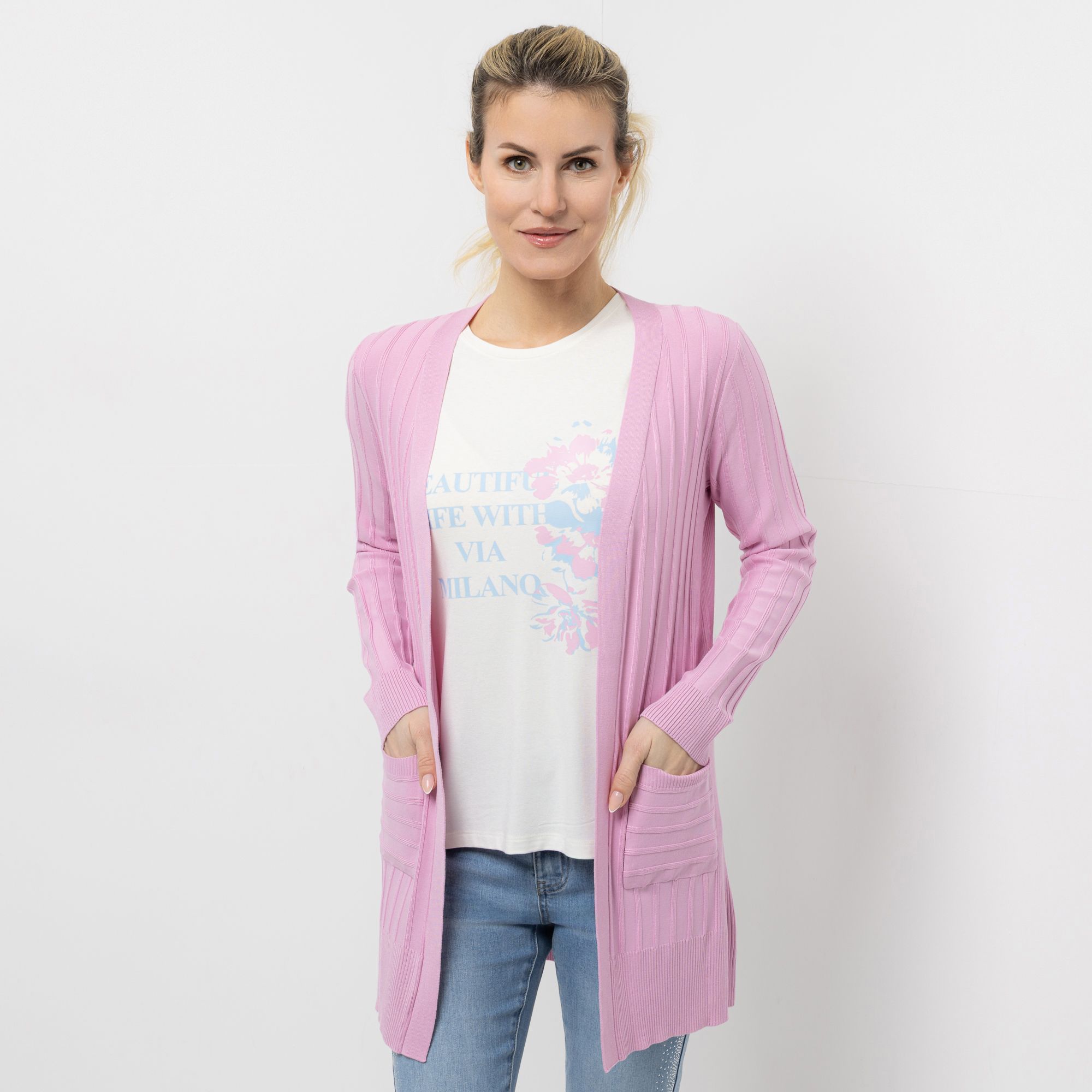 VIA MILANO Longcardigan Rippstrick Länge ca. 78cm oberschenkelbedeckend