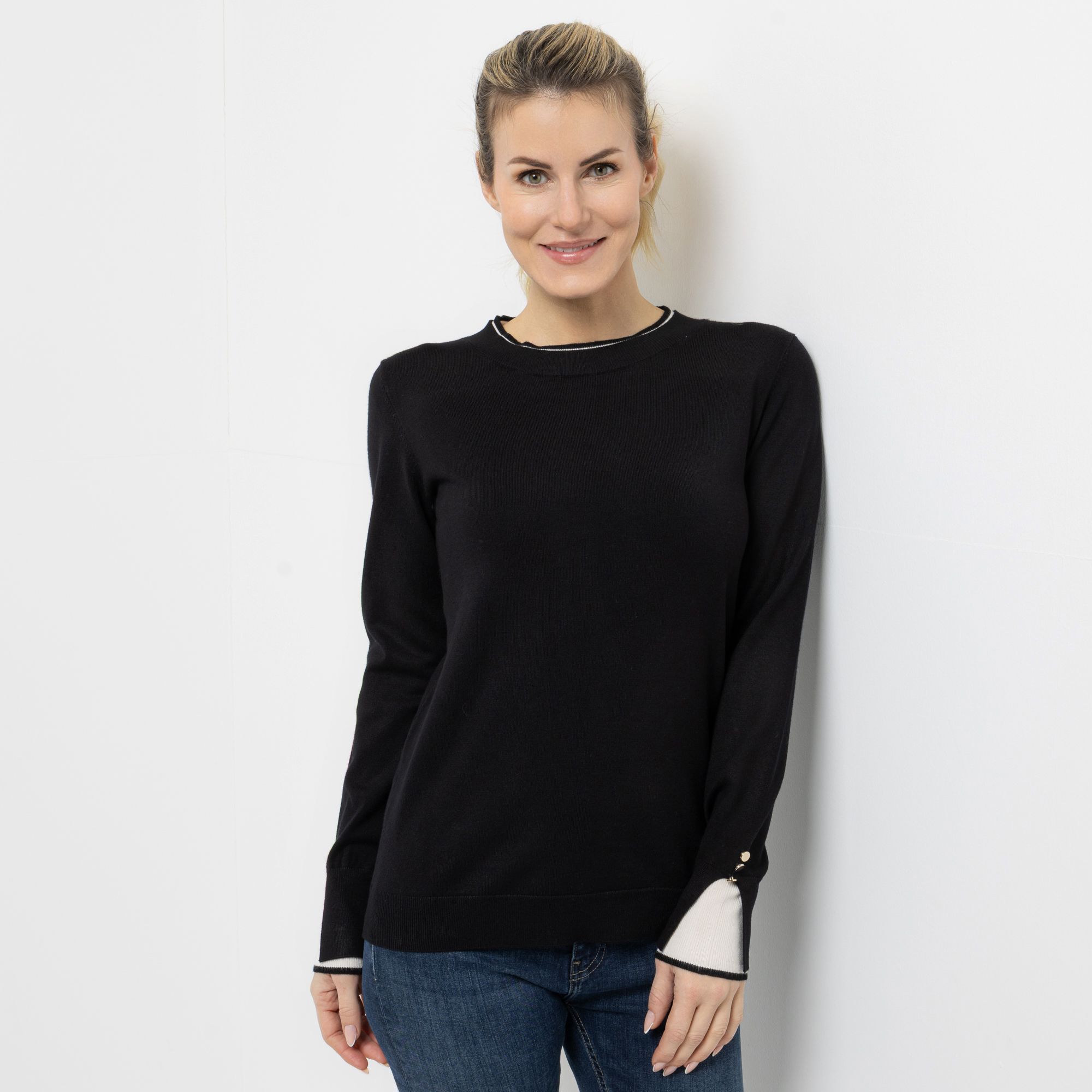 VIA MILANO Pullover, 1/1-Arm Rundhalsausschnitt Kontrast-Details figurbetont