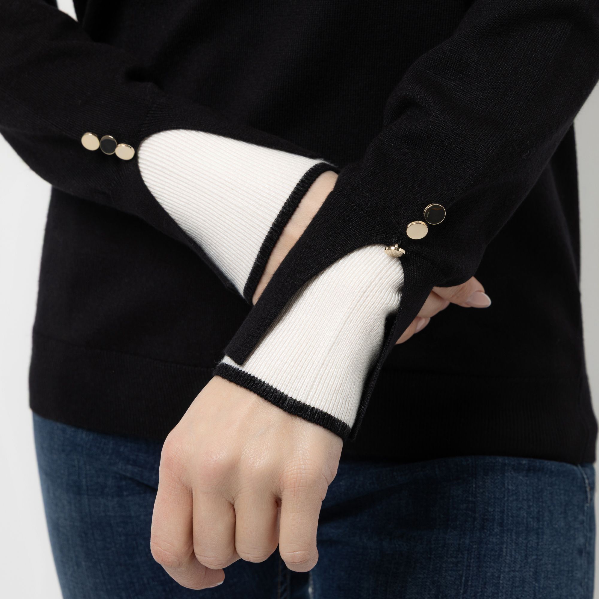 • Langarm mit Knöpfen am Ärmel