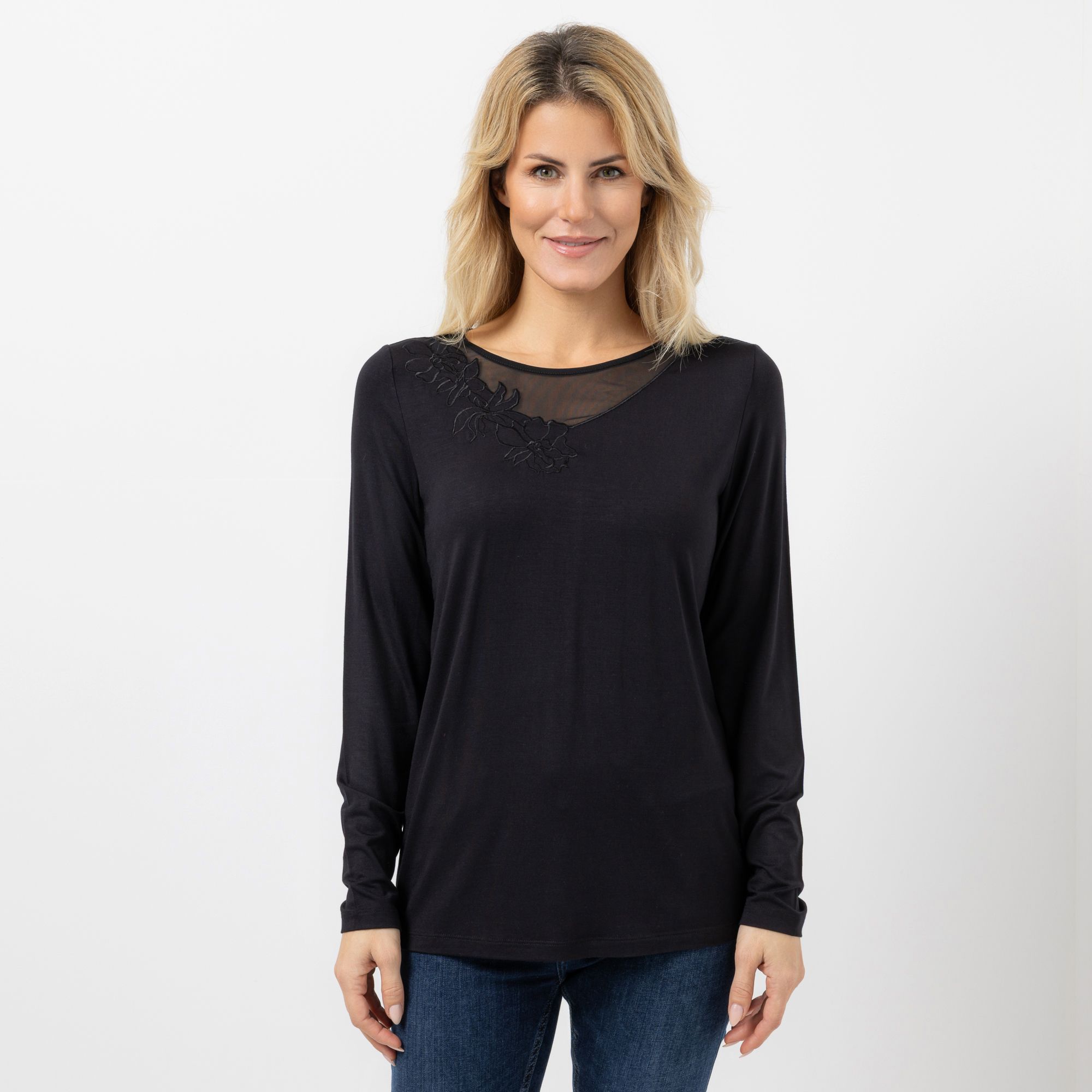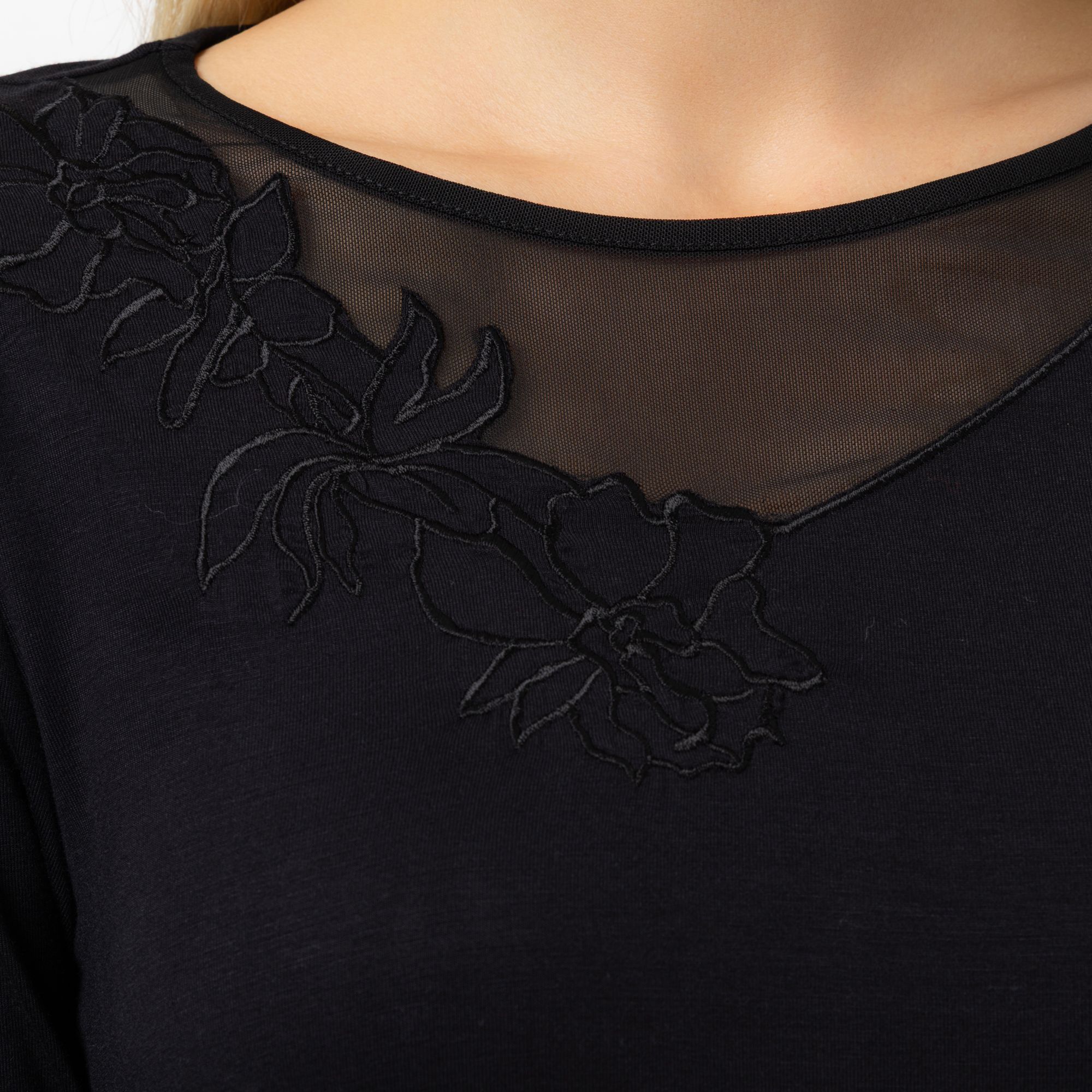 • Ausschnitt mit Mesh & Blumen-Stickerei