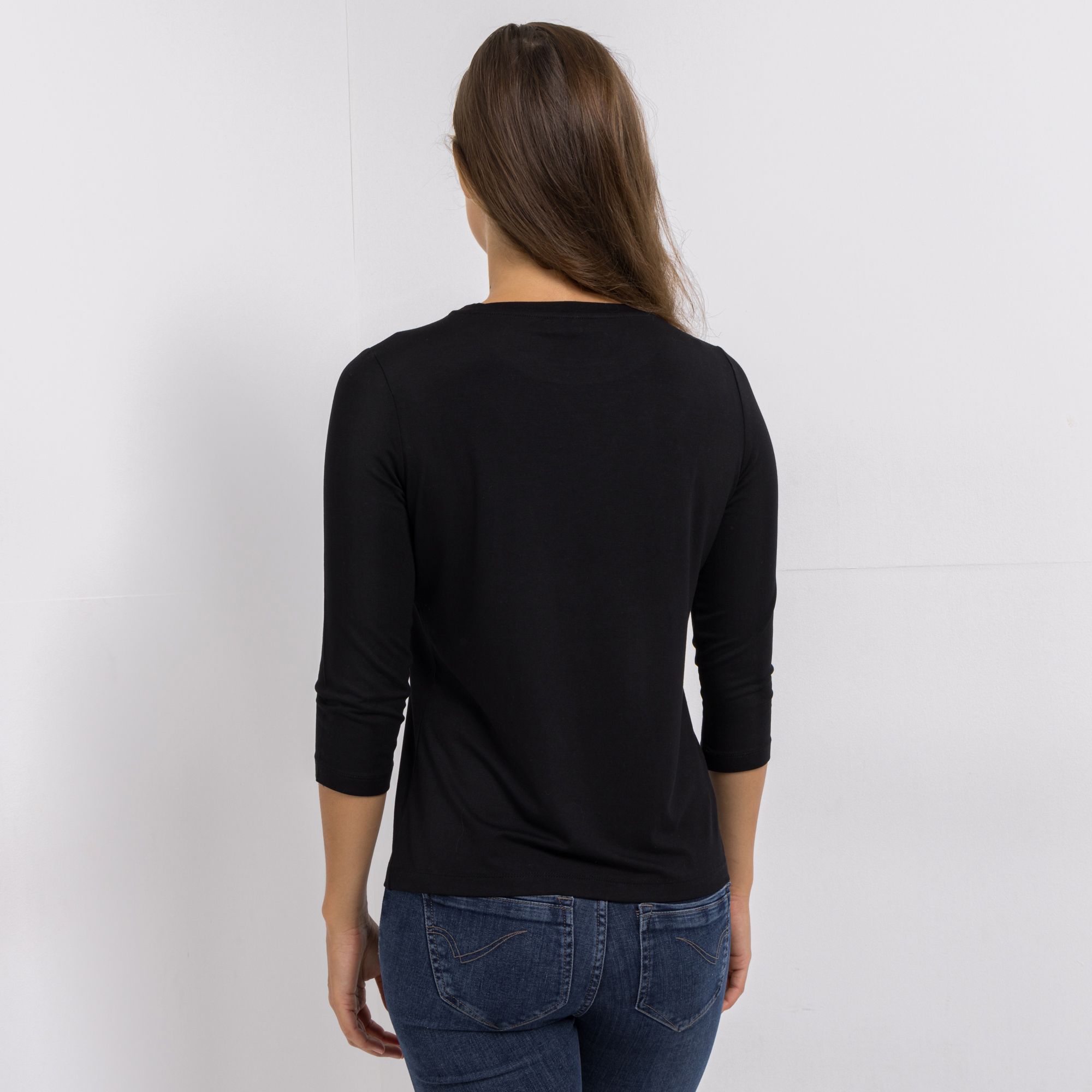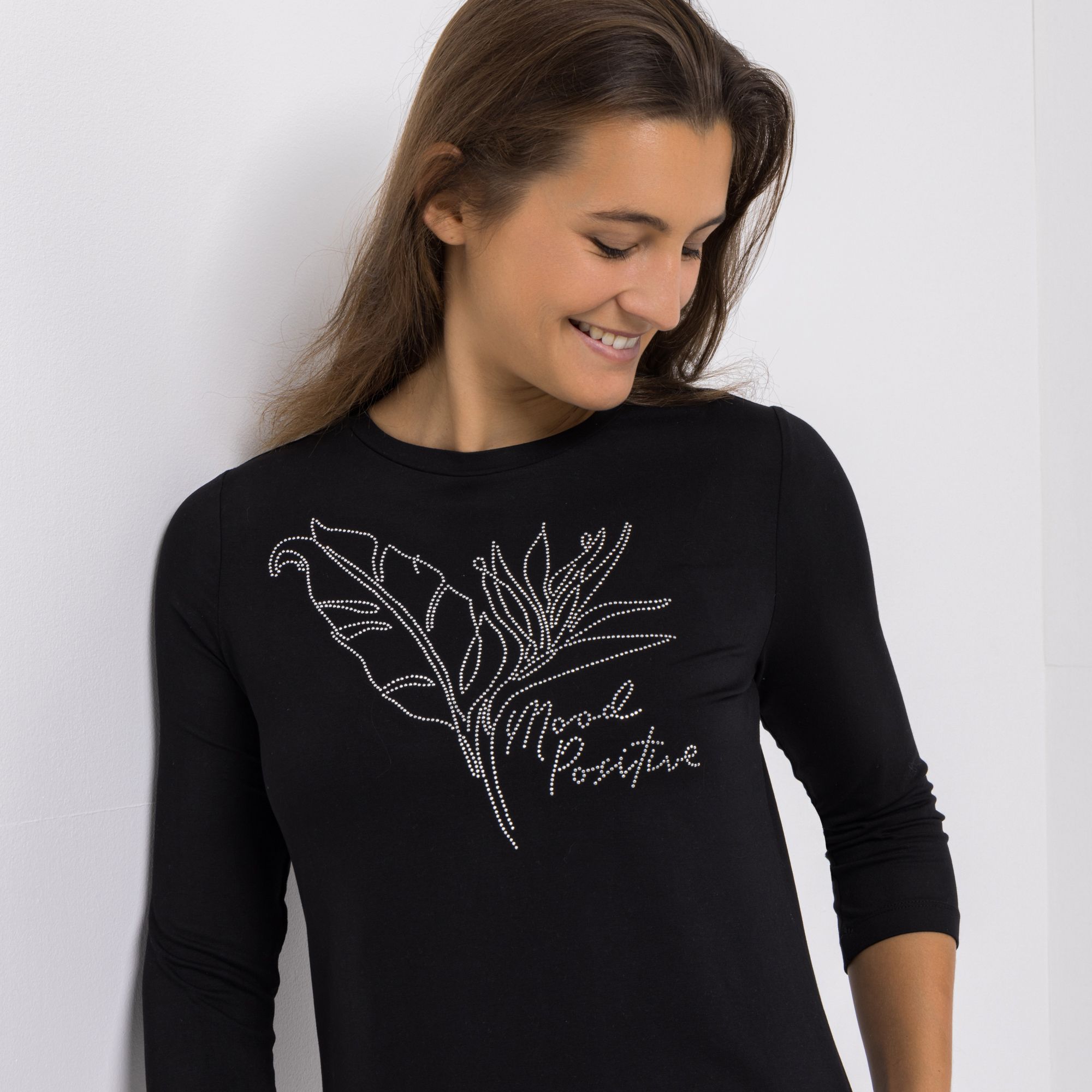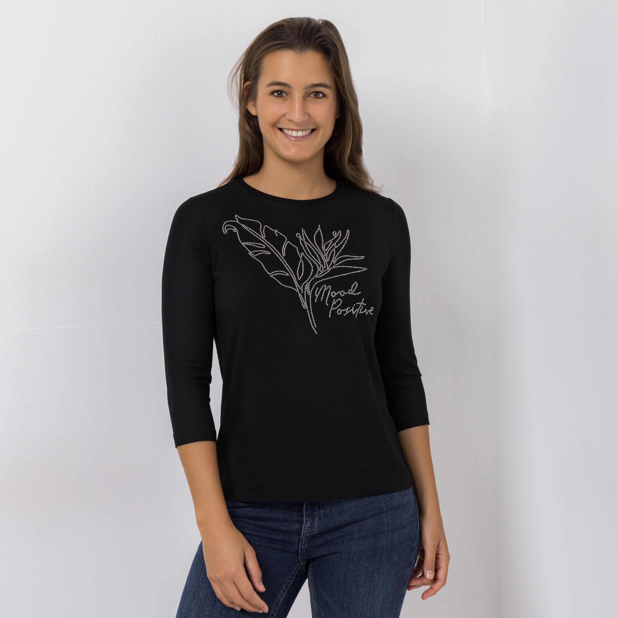 VIA MILANO Shirt, 3/4-Arm Rundhalsausschnitt Steinchen-Details figurumspielend
