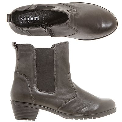 Die VITAFORM Damen-Stiefelette aus echtem Leder hat innen und außen jeweils einen breiten Stretcheinsatz, außerdem Verstärkung an Kappe und Ferse, Ziernähte und einen Blockabsatz.
