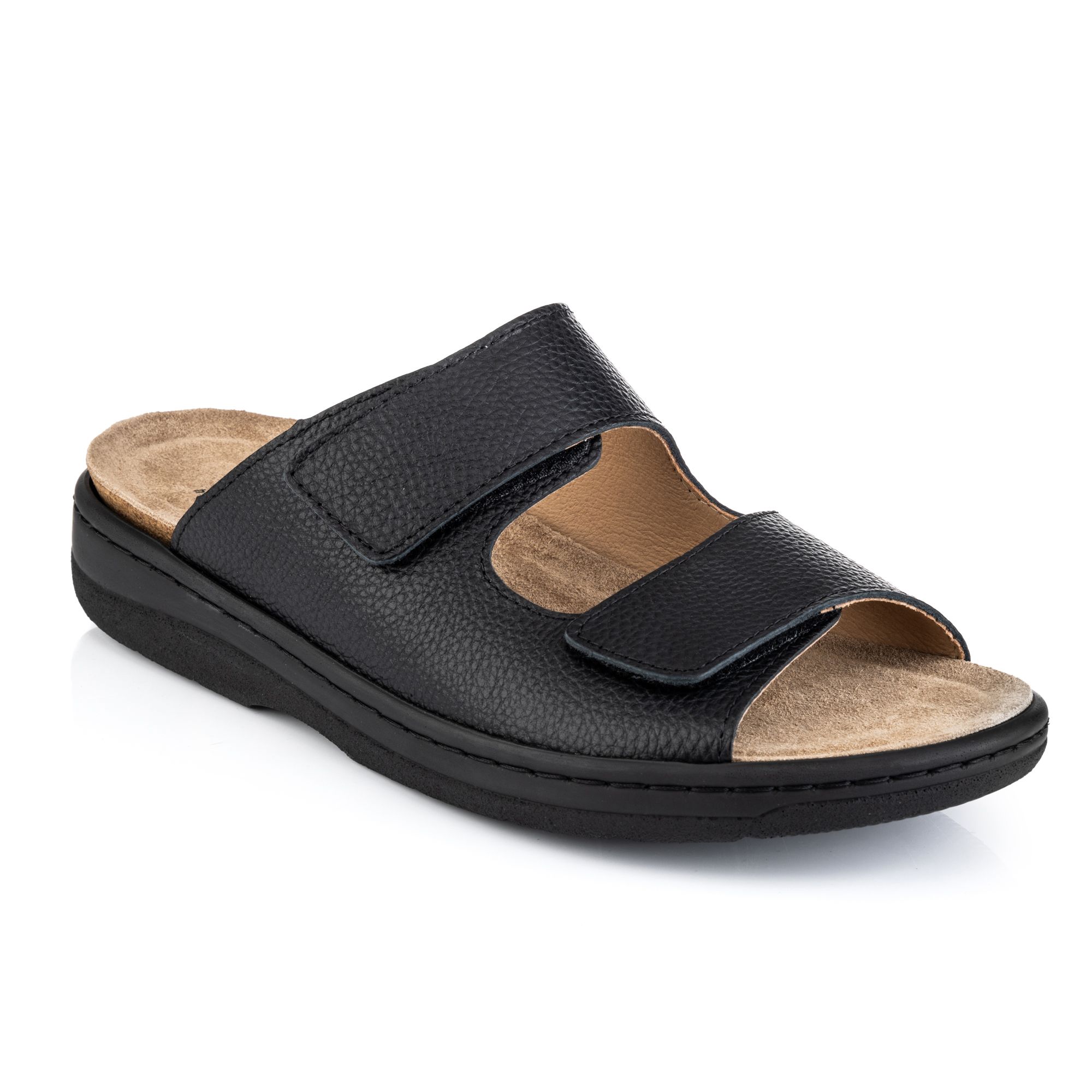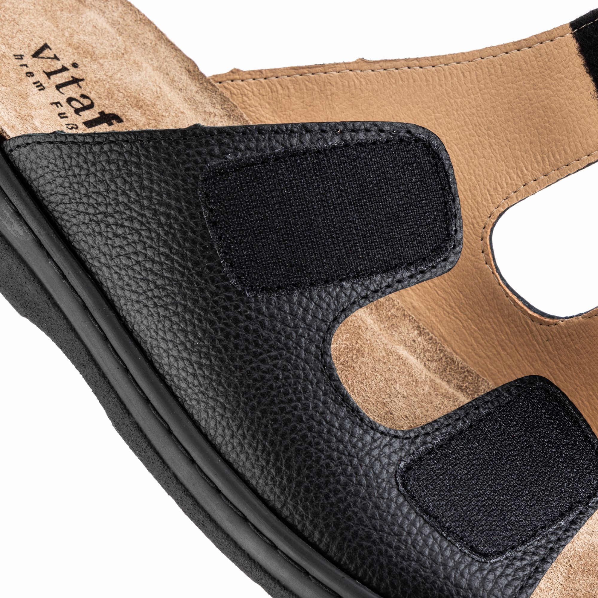 VITAFORM Herren- Pantolette Nappaleder 2 Klettverschlüsse Kontrastnaht