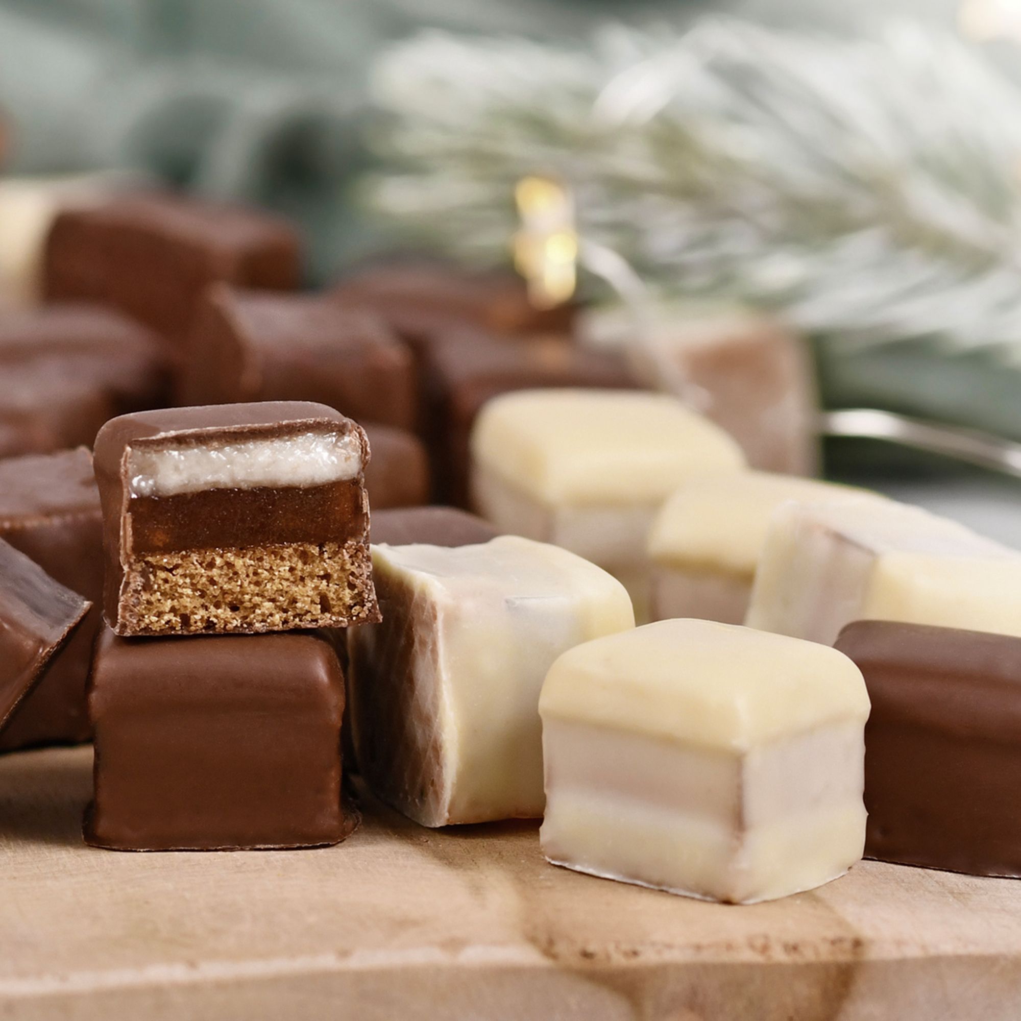 - gemischtes Set (1 x Dominosteine mit weißer Schokolade, 2 x Dominosteine mit dunkler Schokolade)