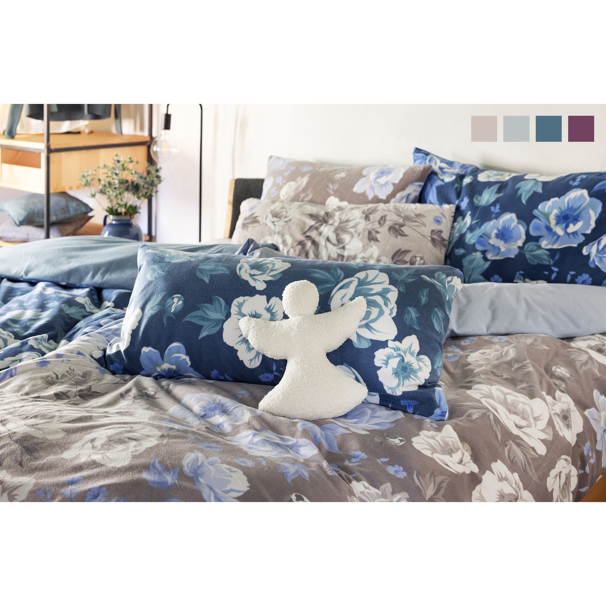 Mit dieser leicht wärmenden WINTERENGEL Wendebettwäsche kannst du behütet schlafen. Ein Engel wacht nachts über dich, während du entspannt ruhst. Die Edelflanell-Bezüge mit zartem Blütendesign und passendem unifarbenen Spannbettlaken sorgen für kuschelige Nächte.