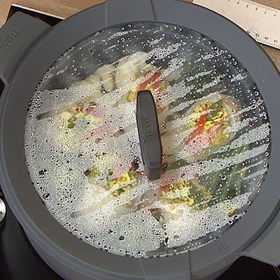 Der hochwertige Topf von WOLL concept plus kann auf allen Herden genutzt werden, auch auf Induktionsplatten. Er hat einen multifunktionalen Siebeinsatz, der zum Dämpfen, Kochen, als Untersetzer, Spritzschutz und Sieb genutzt werden kann.