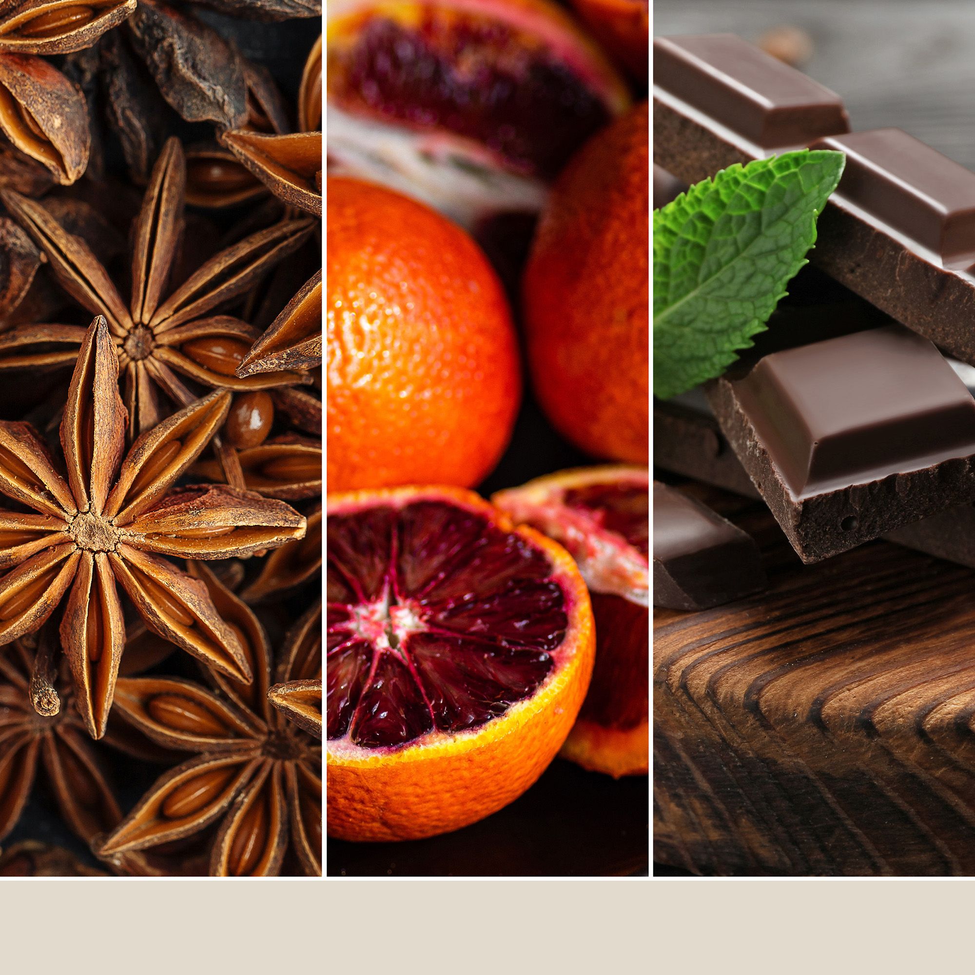 - Herznote: Sternanis, zerstoßener Zimt, Bisamapfel